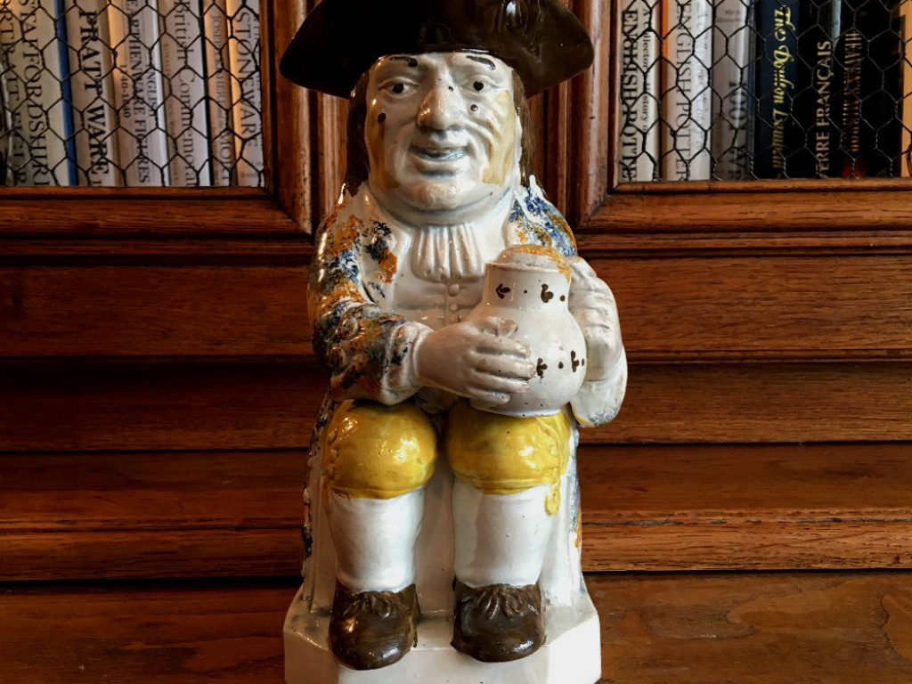 Specialize in early English antique pottery dated 1740-1840 that includes antique toby jugs, salt glazed stoneware pottery, English delft, creamware, pearlware, Staffordshire pottery figures.
